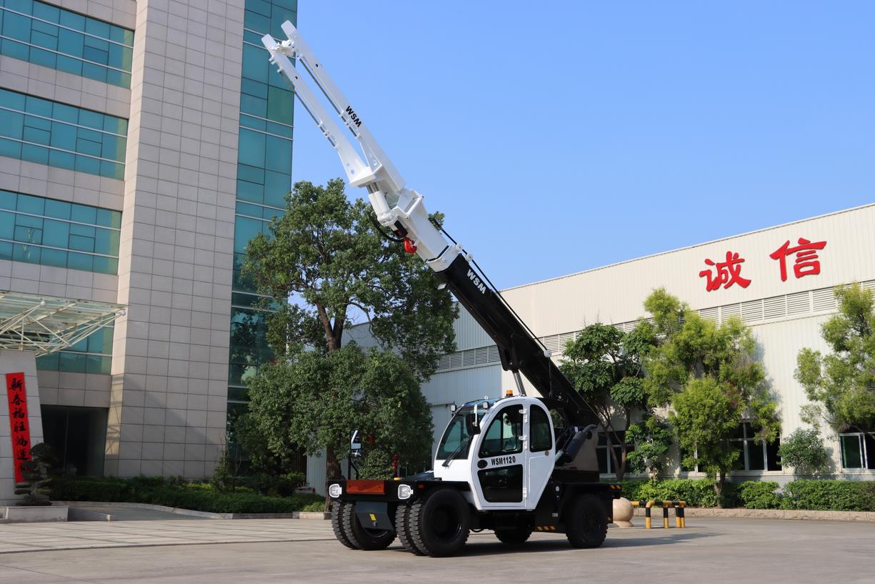 4、后桥由横置油缸提供转向,转向角度大,减小了整机的转弯半径,车子的通过性能好。适合在空间有限的地方作业。转向灵活,提高了整机的作业效率;