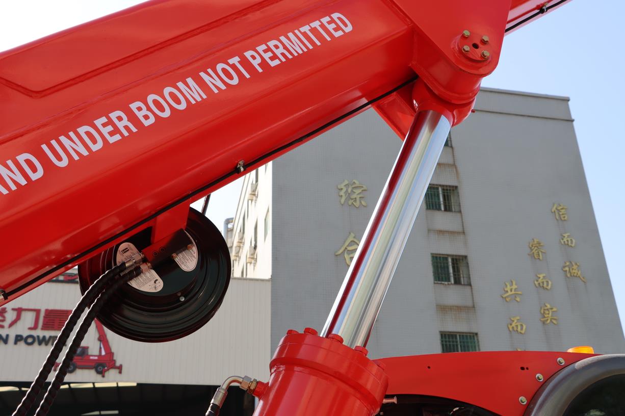 5、车架采用整体式车架拼焊而成,车架强度高,安全性好采用叉车底盘形式合理布置各部件安装位置,宽敞的工具箱便于用户放吊具绳索工具等,使整车外观合理化、规则化;