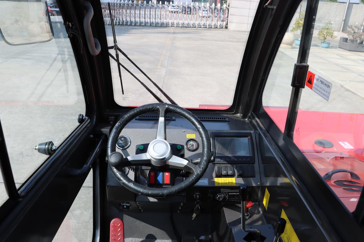 3、采用前桥四轮驱动,大大提高了前桥的载荷能力,克服了越野式伸缩臂叉装车前桥两轮胎载荷不足因素,安全性更高;